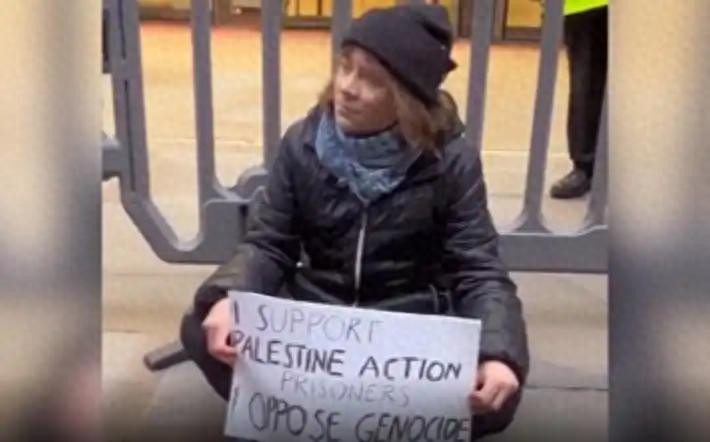 今年7月,英国政府以该组织成员闯入皇家空军基地损坏军用飞机、袭击与以色列有联系的国防企业为由,根据反恐法将“巴勒斯坦行动”列为被禁组织,加入该组织最高可判14年监禁,这一决定让该组织与“基地”组织等被归为同一类别。8月,伦敦爆发大规模抗议示威,警方逮捕超过466人。而通贝里的被捕,正是因为她展示的标语被认定支持这一被禁组织,违反了英国2000年《反恐法》第13条,最高可判6个月监禁。
