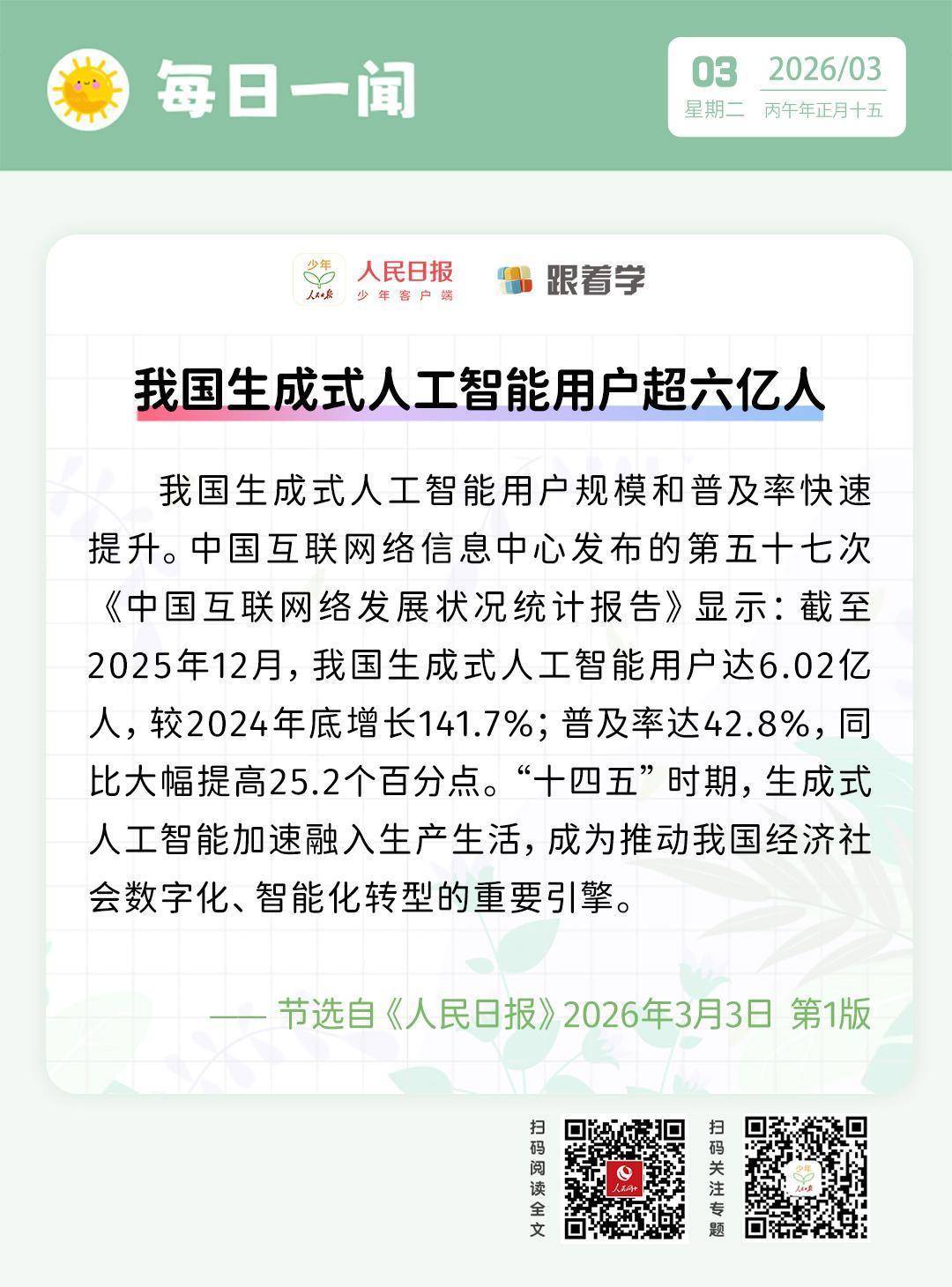 创高网 每日一闻丨我国生成式人工智能用户超六亿人